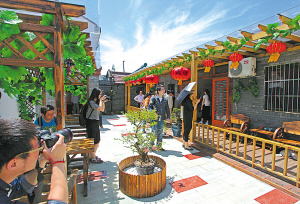 应邀媒体记者在鞍山村新近开张的一家民宿参观。(胡建华 摄) |