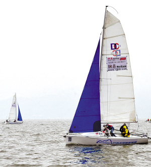 首届国际湖泊帆船公开赛在东钱湖举行。(李岩宏 摄) |