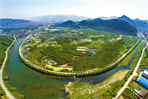 “五水共治”实施以来,奉化市已有173个村完成污水治理基础设施建设,今年还将新增123个村。该市加快化工、造纸、铸造等污染行业企业治理速度,推出一系列长效机制,让更多村民享受青山绿水。图为从空中俯瞰尚田镇投入近2亿元治理的县江尚田段,该河段现被当地居民称为“小漓江”。