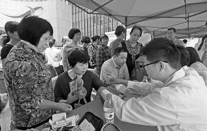 专家在为居民测量血压。 本报讯(记者王博 江东记者站杨磊 通讯员韩海军 李超)昨日上午,世纪东方广场人潮涌动,江东区统一战线专家服务团正式成立,7个民主党派和6个统战团体的专家团为200余名群众提供了医疗健康、考生心理、食药安全监测等方面的咨询服务。专家团现场与区民政局下属社会机构签订了四项公益合作项目。这种由统战部门牵头,集中管理、项目化运作,让民主党派和统战群体“抱团”为百姓服务的模式,在我市尚属首创。 统一战线联系广泛、人才荟萃,近年来在服务江东的改革发展和保障民生中作出了重要贡献。为全面推进党外人士“一起走”,更好发挥统一战线“人才库”、“智囊团”的作用,江东区委统战部与各民主党派、统战群团协商决定成立专家服务团。 “依托党派社团,发挥专家特长,同心服务民生,整合松散力量助业惠民。”江东区政协副主席、区委统战部部长戴嘉敏说,统一战线各党派、团体的主要职能作用是团结凝聚各类党外代表人士开展“参政议政”、“民主监督”和“社会服务”三项职能,这次专家服务团的成立,除了发挥专家团专业资源优势,提供专业化、团队化社会服务,为群众解决实际问题外,还有助于深入基层,在服务群众的过程中开展社会调查、课题研究,征集社情民意,从而为参政议政提供帮助。 目前专家服务团共有66名专家,行业涉及教育、医疗、科技、法律、工商等领域。下一步,将整合教育和医疗专家队,为江东“困境儿童”及家庭提供心理观护、儿童康复、慈善服务;深化法律和文化便民服务,为基层社团组织提供专业辅助,以促进社会组织更好承接政府基层管理职能;成立创业服务队和生活服务队,为有意向、有困难的基层创业就业人员提供培训、就业咨询、实习岗位等服务。