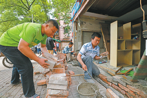 白鹤街道黄鹂小区一违规店家正在被封闭。(王博 李超 摄) 本报讯(记者王博 江东记者站杨磊 通讯员徐琳)昨天上午,江东区白鹤街道再次联合城管、公安、市场监管局等部门,对黄鹂小区2号门主干道沿线的15家“破墙开店”实施封闭,预计本周可完成。届时,黄鹂小区违规“破墙开店”行为整治实现清零,75间违规店面被封堵并恢复原貌。 黄鹂小区是江东区规模最大的老小区,建于1988年,有居民5118户。据了解,在2000年左右,个别底层住户开始违规破墙搞经营,随后大家跟风效仿,使得黄鹂小区成为“破墙开店”的“重灾区”。违规破墙经营鼓了部分业主的钱包,却给整个小区带来了种种负面影响,房屋安全隐患、交通堵塞、夜间扰民、环境脏乱差等,居民反应强烈。 今年,江东区启动“破墙开店”攻坚行动,黄鹂小区首当其冲。为此,白鹤街道挨家挨户走访、排查,摸清各经营户店主或房东的“家底”,并在此基础上制定了整改计划。3月,率先启动并完成破墙问题最严重的黄鹂小区1号门沿主干道沿线“破墙开店”封门工作;4月,对3号门区域破墙开门店铺实施封门处理。随着昨日小区2号门主干道沿线的“破墙开店”被封闭,标志着整治行动成功收官。 “开起来容易,封回去难!破解这一顽疾关键在于下定决心和公平公正。”白鹤街道城管执法中队有关负责人说,黄鹂小区作为一个典型的老小区,老年人占了近4成。因为一些违规店面的租金是底层老年业主的主要收入来源,使得他们一开始对整治行动抱有抵触情绪。社区通过召开普法座谈会、入户宣传做思想工作,对困难户实施社会保障、就业等帮扶,用贴心化解了居民心头“坚冰”。同时,还将相同业态的违规店面同步封堵到位,做到“一把尺子量到底”,消除了居民观望情绪。 接下来,白鹤街道将根据黄鹂小区的综合提升工程安排,在原本破墙开门的店铺门口增设停车位或修复绿化,对小区居民楼进行立面粉刷,对小区内道路进行拓宽,彻底改善老小区的环境。