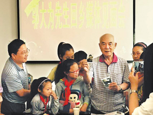 《在那桃花盛开的地方》词作者邬大为应邀来奉化 本报讯(记者徐欣 奉化记者站黄成峰 凌青)“终于来到奉化,这里不仅是小战士王武位的家乡,也是我的故土。67年没回家乡,终于圆梦,很激动也很幸福!”经典歌曲《在那桃花盛开的地方》词作者邬大为应邀来奉化。昨日接受记者采访时,今年已经82岁的他戏称自己是“80后”,言谈中兴奋得像个孩子。 邬大为是我国著名词作家、国家一级编剧,享受国务院特殊津贴、将军待遇,发表词作1000余首。除了《在那桃花盛开的地方》,其代表作品还有《红星歌》《有一个美丽的村寨》《北疆连着我的家》《中国游泳队队歌》等。他告诉记者,自己祖籍奉化江口街道禾家桥村,虽然出生在杭州,后来又长期定居在沈阳,但家乡奉化一直是魂牵梦萦的地方。 因为歌曲创作过程的公开,并通过蒋大为、邬大为两人确认以及读者和奉化市的共同考证,证实《在那桃花盛开的地方》说的就是奉化溪口,近来为各大媒体广泛传播。在奉化市有关部门邀请下,邬大为24日晚来到奉化,次日便来到故乡禾家桥村。“真没想到,阔别家乡六十载,乡亲们不认识我,却没忘记我这个游子。”邬老在宗谱里找到父亲、自己和兄弟的名字时,感慨万分。“他们紧紧握着我的手,搂着我的胳膊,还有老人远远地望着微笑。我虽然说不出什么话,但真的被淳朴、可爱的乡亲们感动了。” 这是邬大为第二次回到禾家桥村。1948年,当时只有15岁的邬大为随父亲、哥哥来禾家桥村省亲。邬大为跟乡亲们说,那次以后,对家乡的思念之情深深地留在了他的心里,无论他走得多远,他的根永远在奉化、在禾家桥村。 惦记着小战士讲述的桃园,邬大为参观了萧王庙街道林家村“天下第一桃园”和溪口镇新建村的“世界桃街”。虽然现在不是桃花盛开的季节,但邬大为还是被家乡的美景深深吸引,开心地用“石骨铁硬”的家乡话说:“这里跟《在那桃花盛开的地方》歌词的意境非常吻合,家乡就是我心中美丽的世外桃源。”随后,他在奉化市职教中心为当地音乐爱好者作了一场讲座,与大家交流自己从事音乐创作几十年来的心得体会。 “小战士虽然不在了,但他保家卫国、甘于奉献的精神需要我们代代相传。”桃花和水蜜桃是奉化靓丽的名片,他建议家乡以桃为主题,组织创作一批风光歌曲,自己乐意为家乡创作最美好的歌词,为家乡的建设出一分力。 走在家乡的大街小巷,面对热情的父老乡亲,邬大为情不自禁地朗诵起了他回家乡后新作的一首词作———《回家的感觉》:“我游遍了世上的名山大岳,我踏遍了天下的短巷长街,当我扑进奉化的怀抱,心里却有着特别的感觉……”