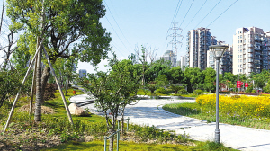 紫郡小区西侧,已建起新公园。 (余建文 摄) |