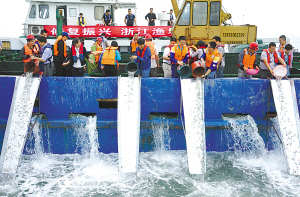图为大黄鱼放流时的场景。(记者 李岩宏 摄) |