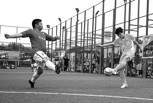 | 图为笼式足球比赛中的镜头。(记者 李岩宏 摄) |