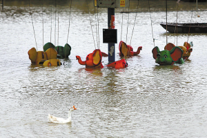 | |  |  | 6月30日,安徽蚌埠城区一个游乐场被上涨的淮河水淹没。 (新华社发) |
