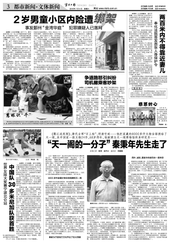 “天一阁的一分子”秦秉年先生走了