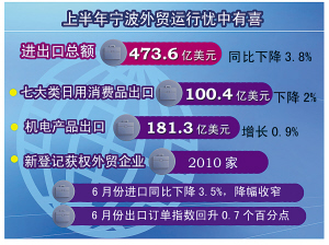 上半年宁波外贸企业排名出炉 申洲针织、台塑关系企业分居出口和进口榜首位 昨日,市商务委对外发布了2015年上半年宁波外贸企业进出口200强、出口200强和进口200强榜单(详见http://www.nbfet.gov.cn)。 榜单显示,进出口200强中,有15家企业为新上榜者,96家企业排名上升,82家企业排名下降,7家企业排名未变化。其中,贝发集团、惠康国际、宁波百地年液化石油气等企业排名上升较快。 200强企业对宁波外贸的支撑作用明显。出口200强中,宁波申洲针织、中基宁波集团、群创关系企业等半年出口额超过5亿美元,广博集团等32家企业出口超亿美元。进口200强中,台塑关系企业、群创关系企业、浙江逸盛石化等半年进口额超过7亿美元。其中,前百强企业进口额占全市比重超过七成。 (俞永均 金刚毅) 二季度出口下降10.7% 诸多外因压制 辨证看待数据 出口在宁波外贸中占据主导地位,份额保持在70%以上,出口情况的好坏直接影响外贸整体运行。一季度,宁波累计出口967.1亿元,同比增长14.3%;二季度出口情况急转而下,共计出口1065.8亿元,同比下降10.7%。受其影响,上半年宁波外贸整体运行走弱,进出口从一季度的正增长回落到负增长。 受人民币汇率升值影响,传统劳动密集型产品出口增速下滑。上半年,全市累计出口纺织服装、塑料制品、玩具、家具、箱包和鞋类等6大类商品555.1亿元,同比下降3.4%。据市商务委专家分析,劳动密集型行业市场竞争充分,行业集中度低,出口产品平均利润率仅为3%至5%。人民币有效汇率每上升一个点,我国外贸出口将减少1.5%。今年上半年,欧元、日元对人民币汇率较去年同期分别上升了21%和18%。汇率频繁波动,境外客户下单更趋谨慎,这是外贸出口持续下滑的首要原因。 与此同时,需求不足与产能过剩相互交织,工业产品出口交货值持续下降。1至6月,全市规上工业企业完成出口交货值1362亿元,同比下滑5.2%,降幅较一季度扩大5.4个百分点。 此外,地缘局势动荡,对部分市场出口干扰加大。今年初以来,受乌克兰冲突影响,加剧了我市对俄罗期市场的外贸风险,前5个月宁波对俄出口同比下降30%。 从下降16.7%到负增长5% 进口降幅收窄 走出低谷仍待时日 去年以来,受国内宏观经济调控影响,进口一直是外贸增长的“绊脚石”,但今年这一情况有所好转。数据显示,宁波进口降幅呈现逐季收窄态势,一季度进口418.4亿元,同比下降16.7%;二季度进口452.3亿元,同比下降5%,降幅环比收窄11.2个百分点。 宁波是国内重要的大宗商品进口集散地,铁矿砂、煤炭、石油等多个商品进口额居国内前列。今年上半年,机电产品、废金属、铁矿砂三大商品分别进口150.6亿元、66.8亿元和62.8亿元,同比下降16.4%、21.1%和39.4%,拖累全市进口整体下降9%。 值得欣慰的是,得益于前几年的进口商品市场建设,以及全国跨境贸易电子商务试点,以日用消费品为主的跨境电商实现较快增长。1至6月,全市跨境贸易进口10.5亿元,其中保税区实现跨境贸易进口8.46亿元,同比增长42倍。尽管从金额来看,目前跨境贸易只占了宁波进口总量的不到四十分之一,但后续增长潜力可期。上个月,国内电商大佬网易公司决定,将其跨境电商基地设在宁波保税区。如果发展顺利,不用五年就能培育出百亿甚至千亿级的跨境贸易产业链。 信心比黄金重要 出口订单指数小幅回升 对于一座拥有天然良港的城市,发展外贸是不二选择。自改革开放以来,宁波一直依靠外贸“吃饭”,摘得了“外贸大市”“全国十大外贸名城”等美誉。从劳动力就业来看,目前每三个宁波人中就有一人从事外贸及相关工作。 “尽管外贸形势堪忧,但宁波外贸在国民经济中的支柱地位依然没有改变,外贸强则工业强、港口兴。”副市长王剑侯认为,宁波要进入全国大城市第一方队,其中打头阵的必是开放型经济,最有实力和竞争力的当属外贸。 根据我市重点联系企业监测体系6月份数据显示,出口订单同比增长及持平的企业占比为67.4%,较上月回升0.7个百分点,结束了自去年11月以来连续7个月的下降趋势。 市商务委提供的另一组数据也表明,今年上半年,我市民营企业实现进出口额1691.3亿元,同比增长0.5%,占全市进出口总值的58.2%,所占份额较去年同期提升2.5个百分点;全市外贸出口新登记获权外贸企业达2010家,显示在目前环境下宁波外贸人不缺信心。 从出口市场结构看,1至6月我市对第一大市场美国出口同比增长11.5%,拉动全市出口增幅2.2个百分点。同期,对拉美、印度、澳大利亚等新兴市场出口分别增长4.1%、8.6%和1.8%。 而进口方面的利好消息也是一个接一个。根据《海关总署关于调整部分日用消费品进口关税的公告》,6月1日起,以暂定税率方式降低护肤品、西装、短统靴、纸尿裤等日常消费品进口关税税率,进口关税平均降幅超过50%。 决战三季度,冲刺四季度。作为经济增长的“三驾马车”之一,宁波外贸定当不负众望,在“减速换挡”中积蓄增长新动力,为全市经济发展作出新贡献。