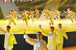 在全场观众的注视下,宁波籍女排国手单丹娜手持火炬,从体育馆上空缓缓“飞过”;到达舞台中央的大屏幕后,单丹娜手中的火炬瞬间“点燃”大屏幕上的火炬塔,顿时屏幕上“烈火熊熊”,全场欢声雷动———宁波市第十七届运动会开幕式昨晚以这种独特的方式揭幕。 在开幕式第一篇章《甬上风》中,来自宁波市聚星武术学校和宁波市武术协会的武术高手开始了他们的表演。“红日初升,其道大光。纵有千古,横有八荒……”随着现场大屏幕播出赞颂中华武术的片段,功夫小子们开始在舞台上闪转腾挪,他们的一招一式充满激情;而在舞台周边,是一群气定神闲打着太极拳的中老年朋友。大屏幕上,各种创意新颖的武打动画场面令人应接不暇。导演利用博大精深的中华武术营造出的气氛震撼着现场每一位观众。 宁波市机关第一幼儿园的小朋友们表演的“篮球秀”逗乐了现场观众。只见他们一会儿双手一起拍球,一会儿坐在地上拍球,一会儿又转着圈拍球。花式篮球表演结束后,这些小球员在现场举行了一场篮球比赛。他们分成两个队,在舞台两边的两个小篮筐之间来回奔走、防守、投篮,“萌萌哒”篮球比赛让现场观众拍手叫好。 第二篇章《时尚海》着重介绍了宁波体育产业特别是体育服饰等方面的发展。舞台上,宁波市老年活动中心晚霞艺术团带来了靓丽的体育服饰走秀;春晖教育-宁波舞蹈世界带来了激情四射的体育舞蹈;威迪斯健身教练团队则向观众展现了健美的体魄。舞台下,宁波市斯博特轮滑俱乐部的小小轮滑手们,展示着灵动矫健的身影…… 大型舞蹈《鼓舞东方》拉开了第三篇章《幸福梦》的帷幕。来自江东区鼓队和浙江花园艺术团的演员们用雄壮的鼓声表达了人们对美好生活的热烈追求。在随后的歌舞《远航》中,两架航模飞机飞到舞台中央,分别垂下一条字幅:“践行一带一路”“甬城扬帆远航”。来自宁波市无线电协会的工作人员的精湛操作技术赢得现场观众阵阵掌声。 在开幕式的最后环节,刚刚当选最美宁波体育人的刘坚军、俞学丰等人一起走上舞台,因故不能到现场的撑杆跳高选手李玲等人则通过视频送来了自己的祝福。所有人员一起合唱《放心去飞》,将开幕式演出推向高潮。