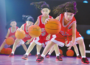市机关第一幼儿园的小朋友们表演的“篮球秀”。 (记者 李岩宏 摄) |