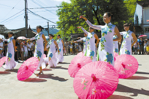 本报讯(记者朱军备 通讯员钱健兴)鄞州区塘溪镇的邹溪稻花会近日在朝霞中启动。先是村民抬出一块块大匾,再竖起五面大旗,然后是八抬大轿,接着是纱船、抬阁、炮铳、龙灯和十几支民间艺术表演队伍,整个行会队伍浩浩荡荡,从邹溪庙出发,一路经过塘头村、邹溪村、施村、沙村等4个村。 与往届不同的是,十多支“草根艺术队”精彩亮相行会:全部由村民组建的“农家乐越剧团”演员摆弄水袖翩翩起舞,老中青组建的山村舞龙队腾挪飞跃竞相斗姿,腰鼓队、曲艺队和舞蹈队配合默契载歌载舞…… 据史载,邹溪稻花会始于清道光八年(公元1828年),是旧时鄞县著名的庙会之一,在大暑前后三天举办。稻花会,就是在水稻扬花时节,为祈求五谷丰登而举办的民间行会。