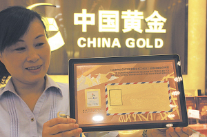 本报讯(记者张正伟)爱好收藏的宁波市民有了新的选择,这次可供收藏的对象是“金邮票”。昨日,《北京申办2022年冬奥会成功纪念》邮票纯金仿印典藏在宁波二百中国黄金专柜首发。据介绍,该套“黄金邮票”今日正式对外出售,但目前已有50名市民预订。 为纪念北京协同张家口申办冬奥成功这一重大历史时刻,中国集邮总公司、北京华江文化发展有限公司与中国黄金集团公司联合制作、发行了这套典藏1套1枚,规格为30毫米×40毫米,面值1.20元。邮票构图重点突出申奥标志,衬以万里长城的设计图案。据介绍,这枚纯金仿印邮票经中国邮政集团公司批准,由中国黄金集团公司打造,重量为1g,含金量为99.99%,全国限量发行199999套,售价999.9元,其中宁波、舟山、绍兴地区首发300套。