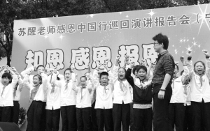 近日,宁波市镇安小学邀请著名爱国主义演说家、感恩教育推广形象大使苏醒老师做了一场以“热爱学习”、“报答师恩”和“报答父母”报告会。 一个个催人泪下的故事,一个个精心设计的情境,一次次充满深情的互动,苏醒老师用最真挚的语言,最生动的例子,最饱满的情感,引导学生发掘自己深藏心中的那份感恩之情,并把它展现出来。很多同学和自己的老师、家长相拥、鞠躬并深情告白:“爸爸、妈妈您辛苦了,我爱你们!”“亲爱的老师您辛苦了,我们爱您!”对于这次演讲,老师和家长们认为“感动、震撼、实在、有用”。 在历时两个小时的演讲中,听众一次次湿了眼眶。“感恩我们的父母,感恩我们的老师,感恩我们的同学,感恩所有人”成为了全场的共鸣,所有在场的听众情感得到了一次升华,心灵得到了一次洗礼。据悉,该校将继续深化孝德教育活动,培养孩子的“明礼、感恩”之德。图为讲座现场,同学们携手含泪谢师恩。 通讯员 庄旦丹 |