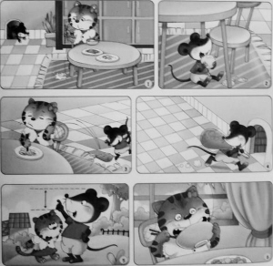 一天,猫妈妈做了一些鸡蛋和大饼让小花猫吃。看着鸡蛋和大饼,小花猫心里不乐意了,哎,每天都让我吃这些不喜欢的东西,真讨厌。反正我比好朋友小老鼠高大多了,就不用吃这些东西了!趁妈妈不注意,小花猫便把鸡蛋和大饼扔到了地上,轻声地喊:“小老鼠,快出来,帮我把这些东西吃掉吧!小老鼠听到小花猫叫自己吃东西,一溜烟地跑了出来,躲在桌子底下吃了起来。没过一会儿,小老鼠就把鸡蛋和大饼吃得一干二净了。