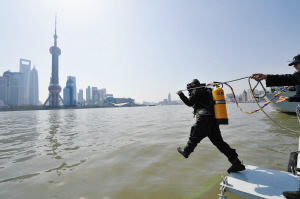 | 潜水员在进行下潜训练。东海舰队某防救船大队供图 |