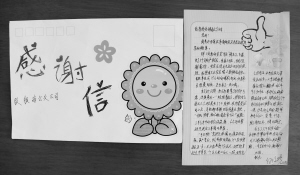 | 徐老师手工制作的一封感谢信。 通讯员 董美巧 摄 |
