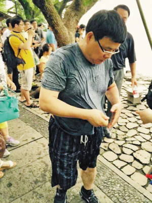 | 上了岸之后的余先生很淡定。 图片来自网友微信 |