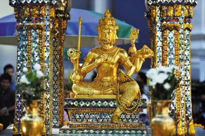 | ▲这是8月19日在泰国首都曼谷拍摄的出现破损的四面佛神像。 |