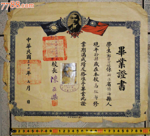 | 宁波旅沪同乡会第一小学1943年毕业证书 |