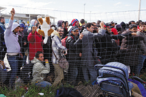 | 9月6日,在匈牙利海吉什豪洛姆,前往德国的难民在奥匈边境过境站排队等候出境。 新华社发 |