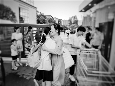 开学当天,和学生拥抱在一起的陆学香老师 |
