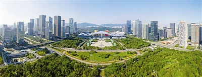 10月2日拍摄的深圳市民中心和莲花山公园一线(无人机照片)。 |